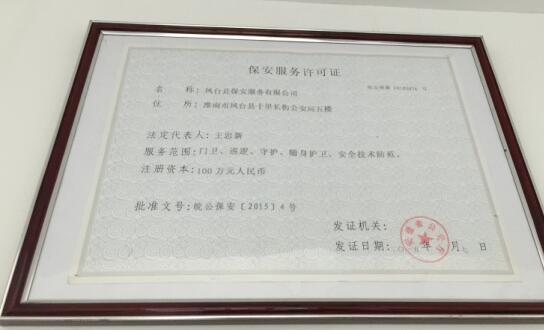 鳳臺(tái)保安服務(wù)有限公司成立于2007年,是經(jīng)鳳臺(tái)縣公安局行政許可的經(jīng)營(yíng)企業(yè),注冊(cè)資金1000萬(wàn)元,具有國(guó)企背景(安徽州來控股有限公司),更是一家朝氣蓬勃的年輕企業(yè)。公司主營(yíng)勞務(wù)派遣、保安服務(wù)、武裝押運(yùn)等。 >>了解更多